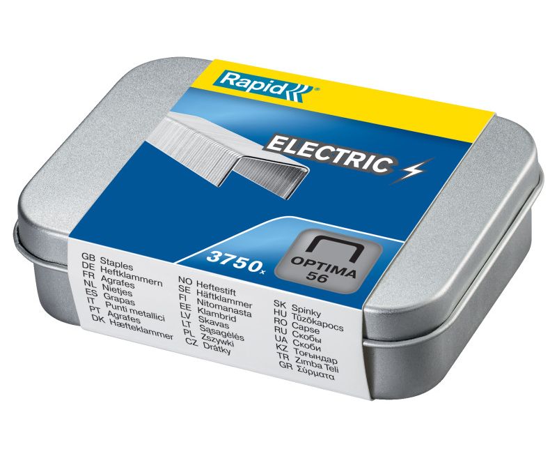 Confecționate din oțel de înaltă calitate, capetele foarte ascuțite ale capselor Optima 56 penetrează cu ușurință și precizie până la 20 de coli. Fără blocaje atunci când sunt folosite cu capsatoarele electrice Rapid Optima Grip și Optima 20. Disponibile în unități de câte 3750. Depozitate inteligent într-o cutie de aluminiu cu capac securizat.
