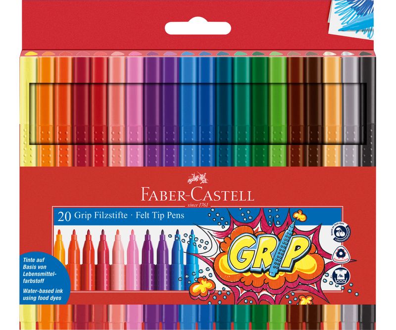 Faber-Castell GRIP. Concepute special pentru un control perfect și o aderență optimă, aceste carioci cu corp triunghiular ergonomic și puncte de prindere (grip) anti-alunecare sunt partenerul ideal pentru orice artist, de la începători la profesioniști.
