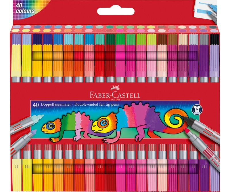 carioci Faber-Castell 40 culori, cu 2 capete, perfecte pentru desen și colorat: