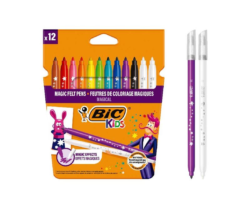 Aprindeti imaginatia unui copil cu BIC Kids Magic Felt Pens. Pachetul contine 10 markere colorate si 2 radiere ce permit copiilor de peste 5 ani sa creeze efecte speciale.