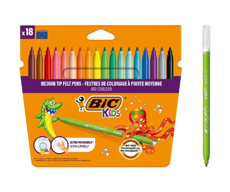 setul BIC Kids Kid Couleur – 18 carioci lavabile, special concepute pentru micii artiști.