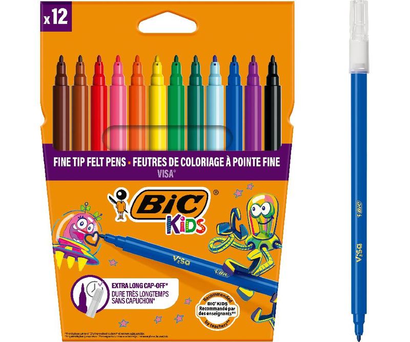Markerele de colorat BIC Kids Visa sunt dezvoltate folosind o cerneala speciala care nu se usuca – chiar si daca markerul este lasat neacoperit timp de 3 luni.