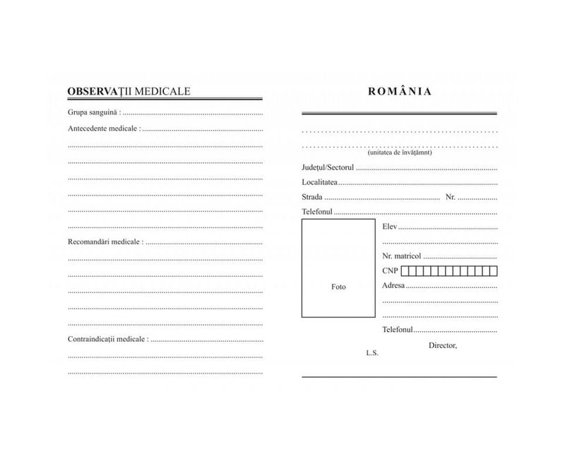 Documenteaza-ti parcursul profesional cu carnetul de elev special conceput pentru scolile postliceale si de maistri. Acest carnet este adaptat structurii curriculare specifice acestor forme de invatamant, care combina disciplinele teoretice cu modulele de practica. Permite inregistrarea notelor, a calificativelor obtinute la diverse competente, precum si a prezentei la cursuri si la stagiile de practica. Este un instrument oficial esential pentru monitorizarea progresului si pentru atestarea parcurgerii modulelor necesare obtinerii calificarii profesionale. Carnetul serveste drept punte de comunicare intre elevi, profesori, tutori de practica si institutia de invatamant. Asigura-te ca ai acest document important pentru a mentine o evidenta clara si completa a tuturor rezultatelor si competentelor dobandite pe parcursul studiilor.