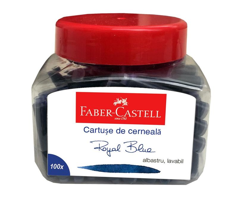 set de 100 cartușe de cerneală mici standard, perfect pentru stilouri. Cartușele albastre sunt