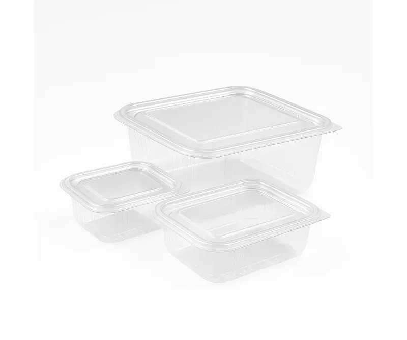 Caserolă PET 1000 cc cu capac înalt ECO, transparentă – Set 100 buc