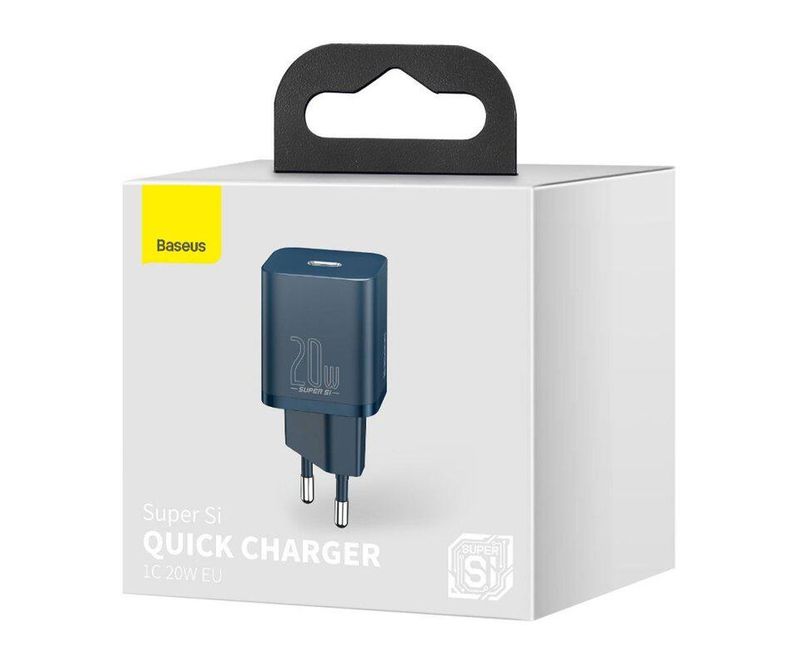 INCARCATOR retea Baseus Super Si, Quick Charge 20W, 1 x USB Type-C 5V/3A, albastru
