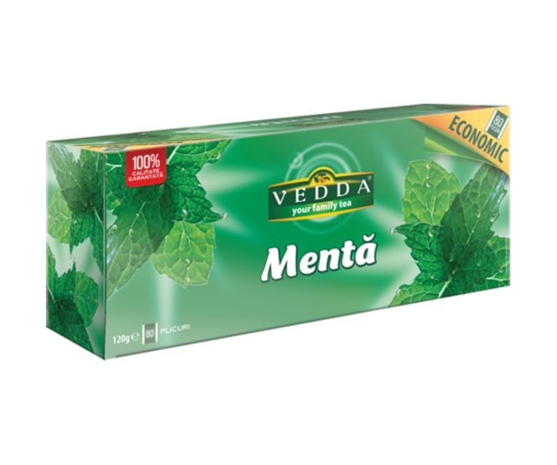 Ceai VEDDA - Menta, pachet economic 80 plicuri x 1.5 gr, 120 gr