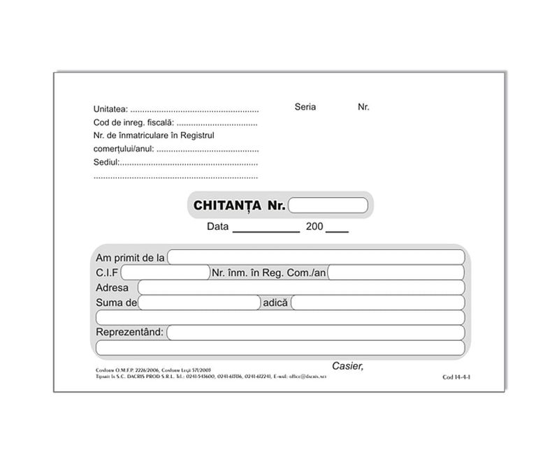 Chitanta A6 3 exemplare hartie autocopiativa 50 seturi/carnet