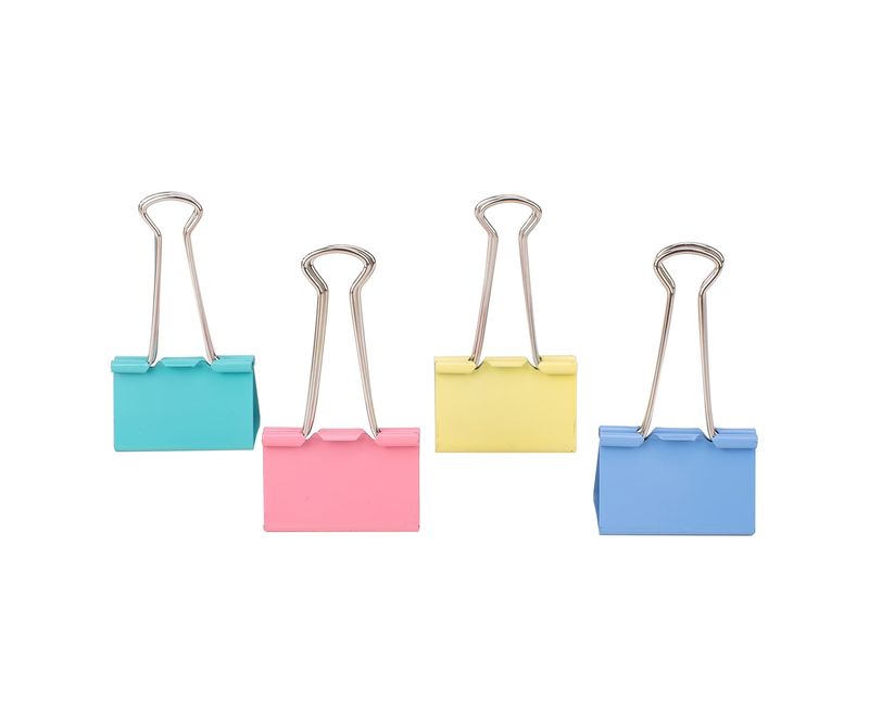 Clips din metal in culori pastelate asortate: roz, galben, bleu, verde. Clema nichetala. Ambalare in cutie din plastic.