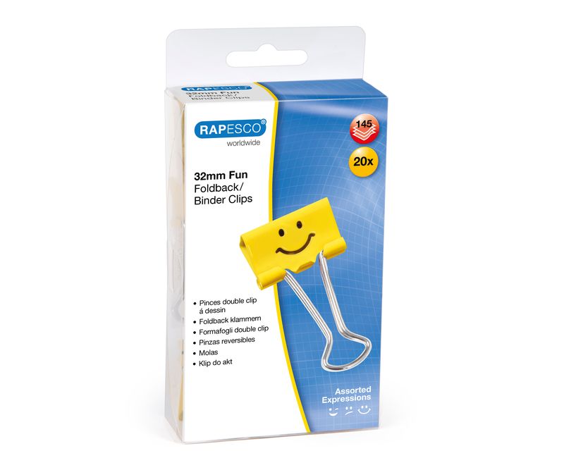 Adaugati un strop de distractie organizarii dvs. cu clipurile Rapesco de 19 mm galben stralucitor cu expresii asortate. Clipsurile metalice sunt ideale pentru a pastra documentele impreuna. Ofera o prindere puternica si o eliberare usoara, fiind usor de folosit. Spre deosebire de capse sau agrafe de hartie, clipsurile nu lasa gauri in documente si pot fi refolosite. Clipsuile Rapesco 32 mm au o capacitate de pana la 145 de coli.