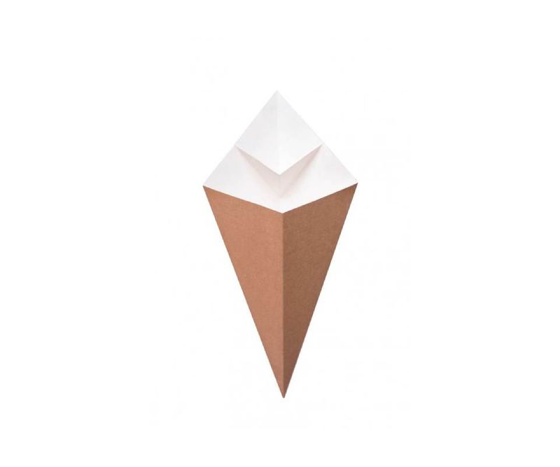 Servește gustările preferate cu stil și eficiență! Conul pentru cartofi cu sosieră de 250cc din carton kraft alb este soluția ideală pentru servirea chipsurilor, churros-urilor, cartofilor prăjiți și a sosurilor delicioase precum caramel, Nutella sau dip-uri sărate. Designul său inteligent permite separarea sosului de produsul principal, oferind o experiență practică și igienică. Ușor de folosit – se desface rapid și este gata de servire. Perfect pentru evenimente, street food, festivaluri sau takeaway.