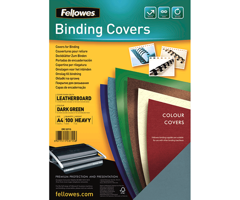 Coperti carton Fellowes A4 250 gr imitatie piele verde 100/top