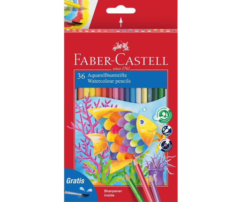 Creioane color acuarela solubile 36 buc + pensula Faber