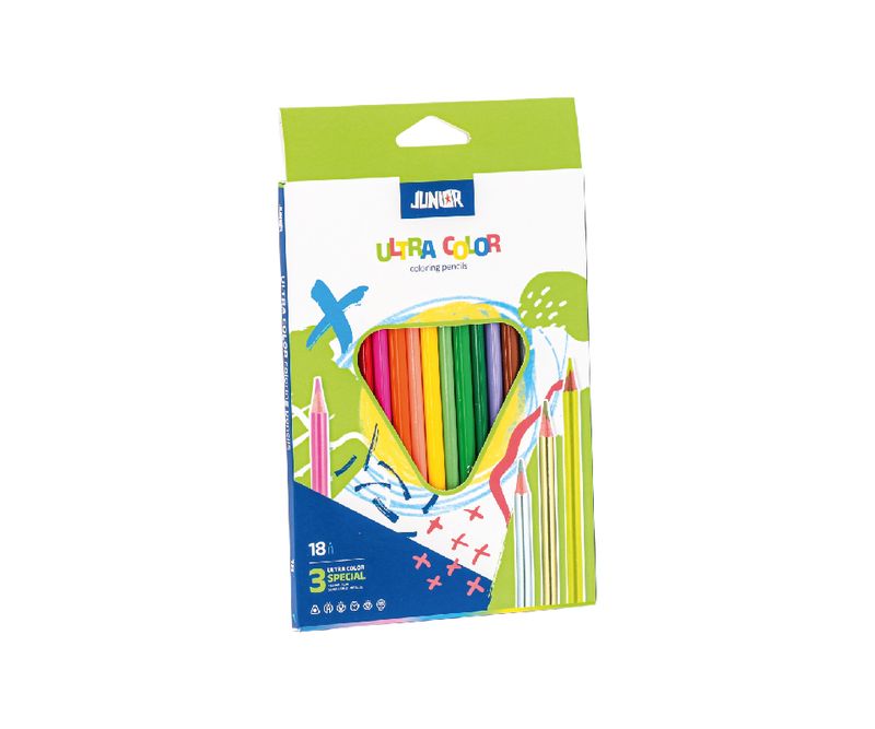Dă viață desenelor tale cu setul de creioane colorate Junior Ultra Color! Acest set conține 18 creioane de calitate superioară, inclusiv 15 culori standard și 3 culori speciale – galben fluorescent, argintiu și auriu metalic. Fiecare creion asigură o acoperire excelentă și culori intense, ideale pentru orice proiect artistic. Creioanele sunt perfect concepute pentru micii artiști, fiind sigure și non-toxice. Cu aceste creioane, copiii își pot dezvolta creativitatea și abilitățile artistice într-un mod distractiv și colorat.