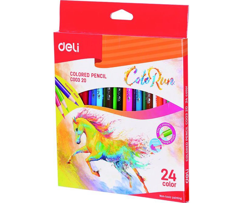 Creioane colorate forma ergonomica. 24 culori vibrante. Vopsea non-toxica. Mina de 2.9 mm grosime. Fabricate din lemn de plop.