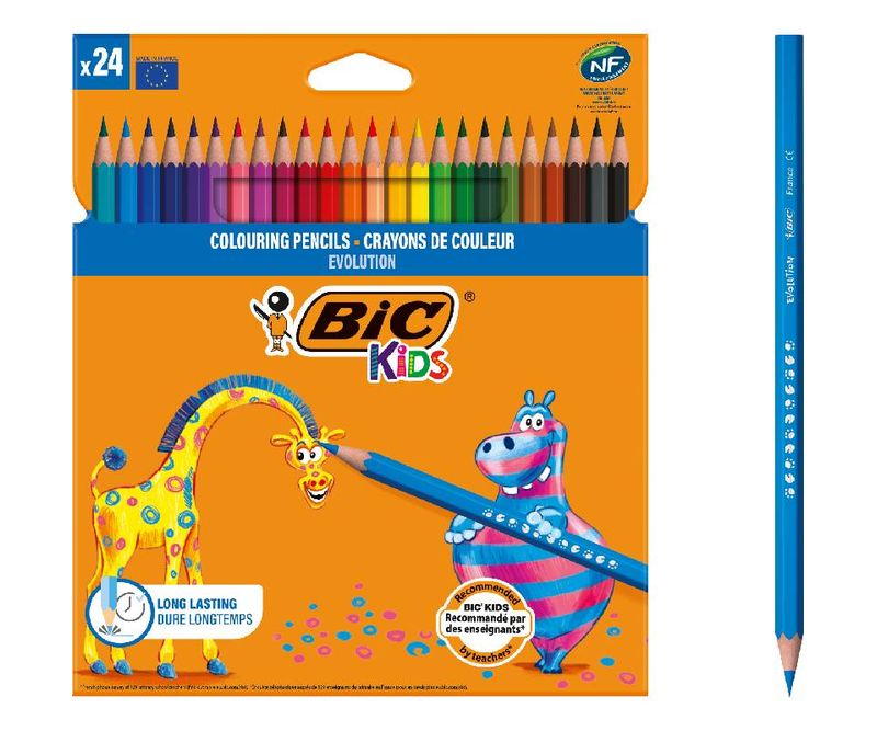 Creioanele colorate BIC Kids Evolution ECOlutions sunt realizate cu 35% materiale reciclate si sunt disponibile in 24 culori foarte aprinse. Fiind fara lemn, acestea sunt de fapt realizate din rasina sintetica folosind un proces unic de fabricatie numit extrudare.