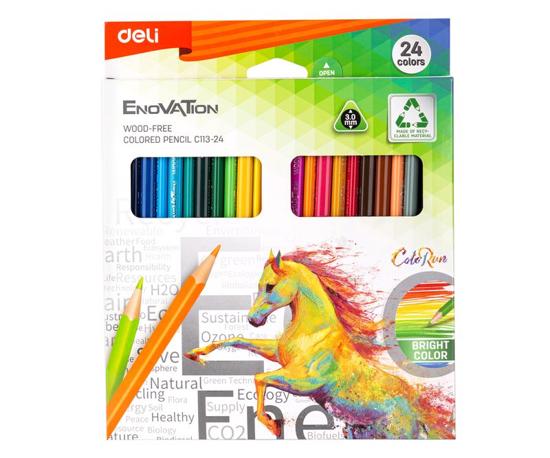Creioane colorate din plastic cu forma ergonomica. 24 culori. Mina de 3 mm grosime, rezistenta la rupere. Realizate din 80% material reciclat.