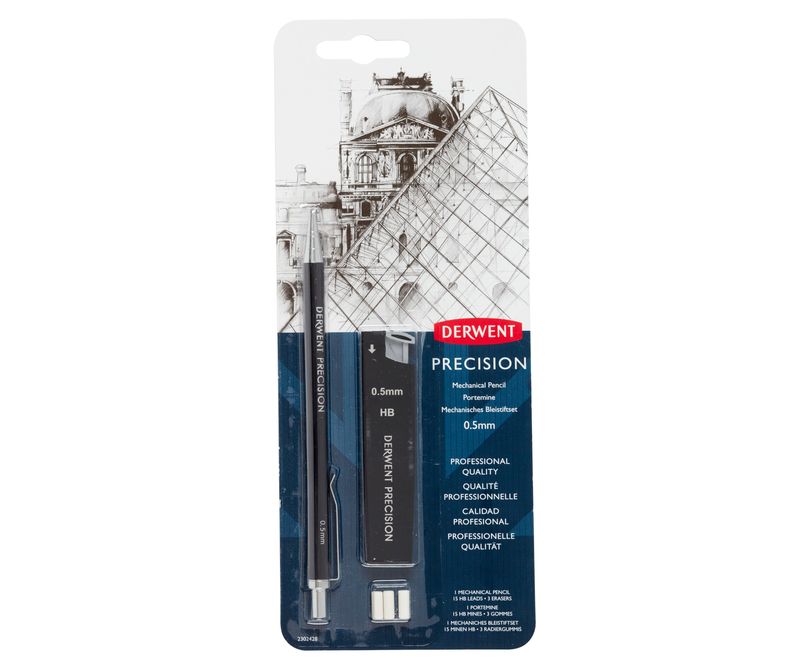 Precizia este ideala atat pentru amatori, cat si pentru profesionistii in desen tehnic; ne mandrim cu un creion metalic premium care a fost proiectat pentru aderenta si echilibrul optim. Disponibil si in varianta de 0,7 mm si pot fi folosite cu toate gradele de mine de grafit. Creioanele mecanice de precizie Derwent includ o radiera incorporata sub capacul butonului și butucul retractabil le face sigure la buzunar. Precizia ofera o asezare lina a grafitului, potrivita pentru detalii fine si tehnici de umbrire.