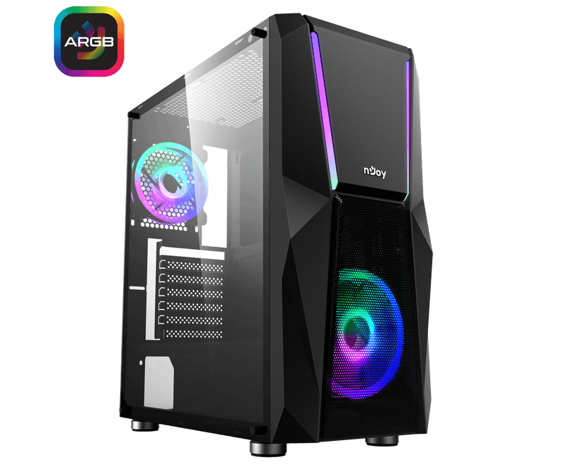 CARCASA NJOY PC FORT Mid Tower ATX NEGRU, fara sursa inclusa, Driver Bay: 2x3.5 2x2.5, Ventilatoare suportate: 4 (fata: 1x140mm, spate: 1x120mm, sus: 2x120mm), Ventilatoare incluse 2 (fata: 1x140mm, spate: 1x120mm),Format Placa De Baza Suportat: Micro-ATX, ATX, Lungime Maxima Placa Video: 360mm, Inaltime Maxima Cooler Procesor: 160mm