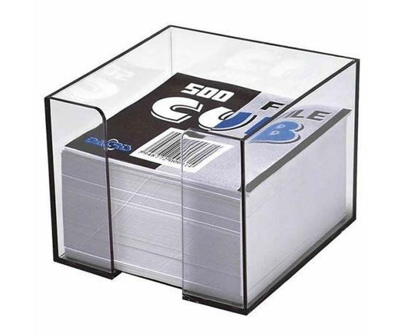 Cub hartie cu suport, o solutie practica pentru organizarea notitelor. Cubul contine un numar de 500 file de hartie de culoare alba, de 9 x 9 cm. Cubul de notite se livreaza impreuna cu un suport realizat din plastic transparent fumuriu.