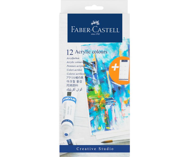 Culori foarte pigmentate, rezistente la lumina, cu un finisaj lucios. Nuante intense, stralucitoare, usor de mixat. Poate fi folosit direct din tub sau diluat cu apa. Rezistent la apa odata uscat. Include 1 sablon pentru crearea propriei diagrame de culori. Etui cu 12 tuburi de 20 ml.