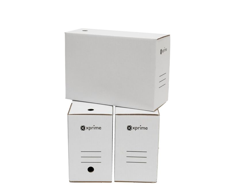 Cutie arhivare 335x240x100mm, 100mm, carton alb, 10/set Realizata din carton ondulat alb, utilizata pentru clasarea economica a documentelor.