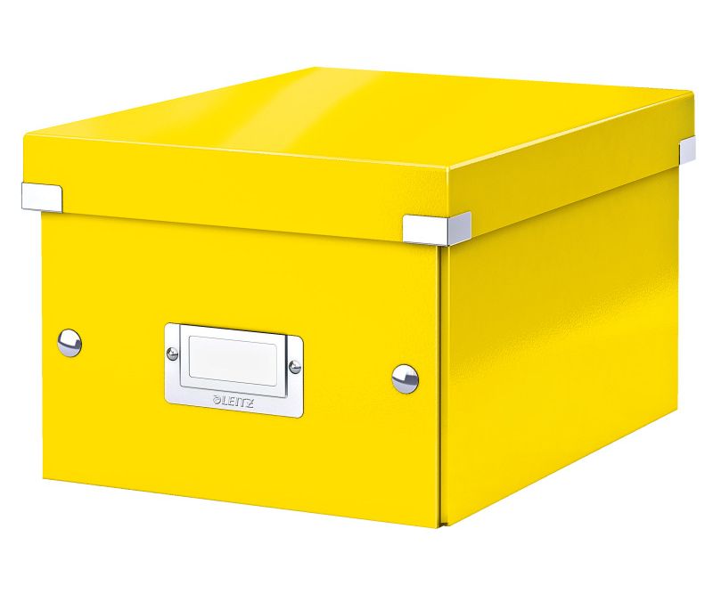Cutie depozitare Leitz WOW Click & Store, carton laminat, partial reciclat, pliabila, cu capac, 22x16x28 cm, galben