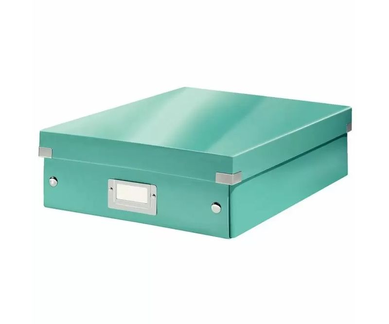 Cutie depozitare Leitz WOW Click & Store Organizer, carton laminat, cu capac, 28x10x37 cm, turcoaz