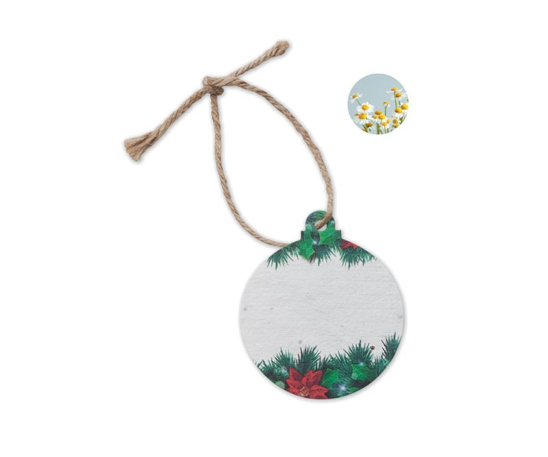 Ornament de Craciun in forma de glob, din hartie cu seminte de flori salbatice si cu franghie de iuta. Dupa utilizare, plantati hartia si o sa rasara flori salbatice. Fabricat in UE. Decoreaza-ti bradul de Craciun sau casa cu acest ornament din hartie. Dupa Sarbatori, puteti planta acest ornament pentru a creste un amestec de flori salbatice in gradina sau pe balcon, Un obiect cu adevarat durabil si reciclabil.