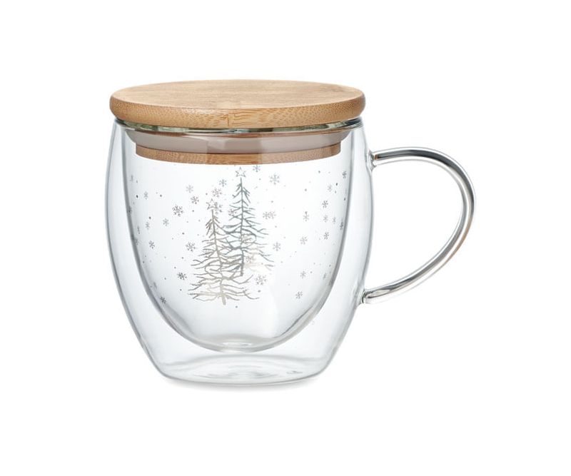 Cană din borosilicat cu perete dublu cu design de brad și capac din bambus. Capacitate: 220 ml. Bambusul este un produs natural, în consecință pot apărea diferențe de culoare, dimensiune sau desen.
