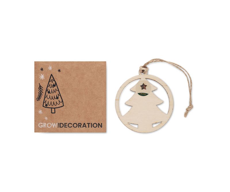 Glob in forma de copac, din lemn cu cordon de iuta, inclusiv seminte de molid. Prezentat in plic kraft.