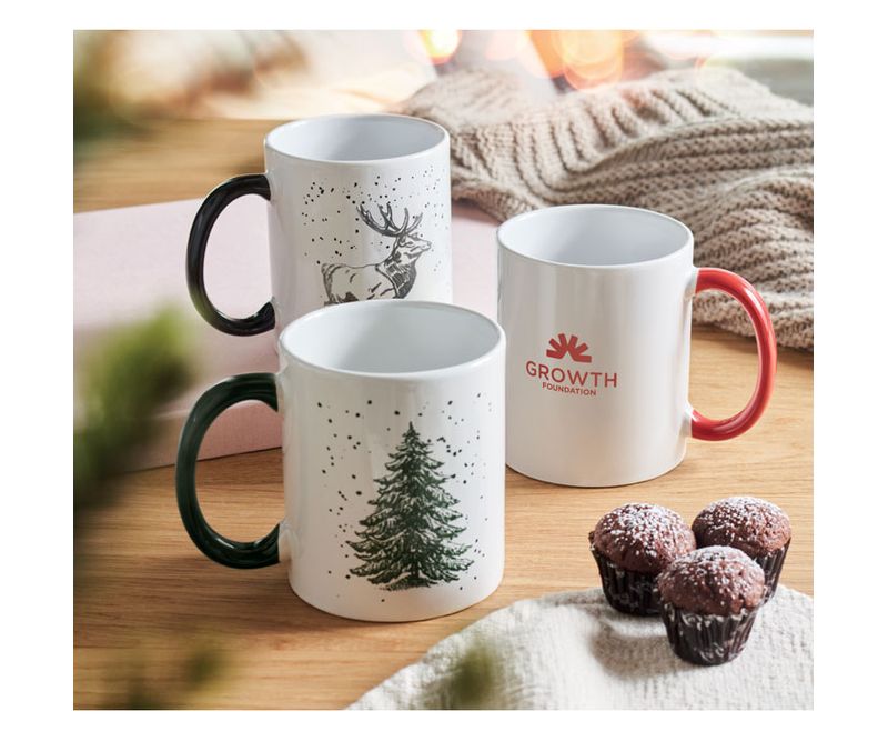Cana din ceramica cu model de sezon. Ambalare individuala in cutie cadou din carton asortat. Capacitate: 300 ml.