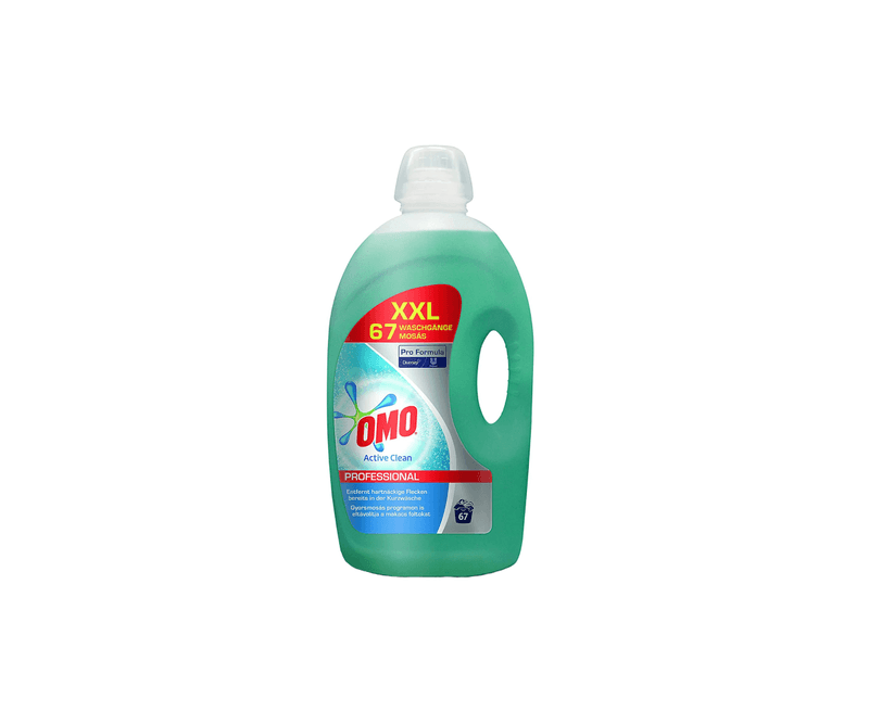 Omo Detergent Lichid Active Clean cu parfum proaspat special pentru tesaturi albe si deschise la culoare.