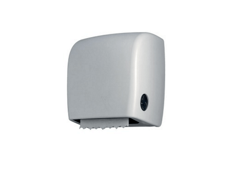 Dispenser Autocut Maxi pentru rola hartie neperforata cu diamtru max 20 cm, portionare mecanica prin tragere, cu contact doar pe portia distribuita.