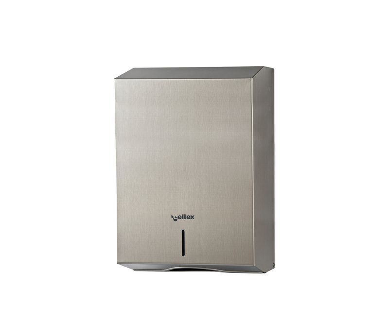 Descoperiti dispenserul pentru prosoape de hartie pliate Celtex Ubi Maior, o alegere excelenta pentru spatiile publice sau comerciale. Cu dimensiuni de 25 x 12 x 37 cm, acest dispenser din otel inoxidabil adauga un plus de eleganta si durabilitate in orice mediu, asigurandu-va ca igiena este pe primul loc.