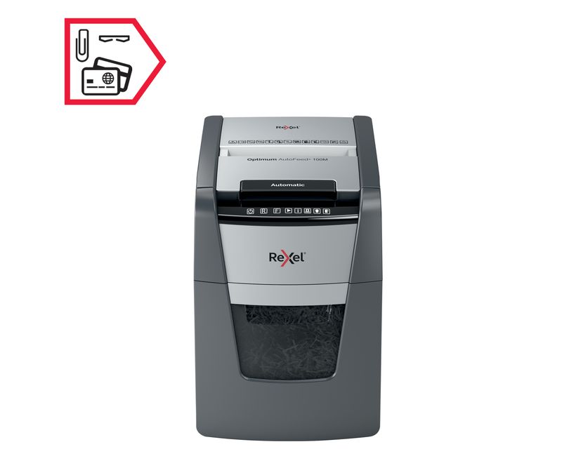 Nu ai timp suficient pentru a distruge documente? Cu ajutorul distrugatorulului automat Rexel Optimum 100M poti economisi timp cu pana la 98% in comparatie cu unul manual. Distrugatoarele cu alimentare automata de la Rexel Optimum fac ca distrugerea documentelor confidentiale sa fie usoara si eficienta, indiferent daca te afli la birou sau acasa.