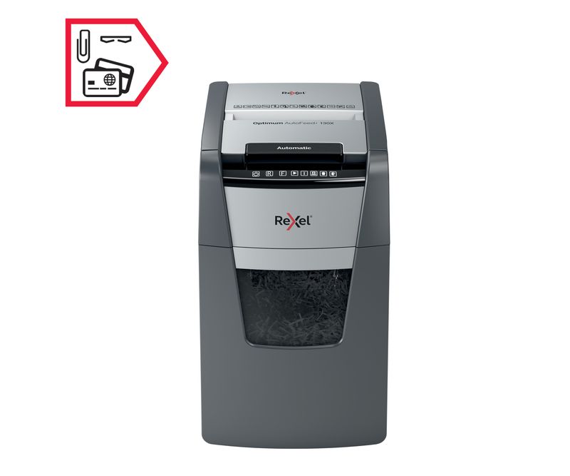 Distrugator automat pentru documente Rexel Optimum 130X cu un timp de functionare continuu de 30 minute, cu functie de racire, panou de control tactil si tehnologie anti-blocare. Distruge pana la 130 de coli A4 simultan cu functia sa AutoFeed, in timp ce fanta manuala distruge pana la 8 coli A4 (80 gsm). Nu este nevoie sa indepartezi capsele si agrafele, acest distrugator automat face toata treaba pentru tine. Fiind ultra silentios, mentine un mediu de lucru calm. Modul de repaus se activeaza dupa 3 minute de nefunctionare. Are un cos de 44 litri ce se extrage, pentru o golire cat mai usoara si un senzor infrarosu ce arata cand este complet plin. Fiecare document este distrus la un nivel de securitate P4 pentru eliminarea in siguranta a documentelor confidentiale.