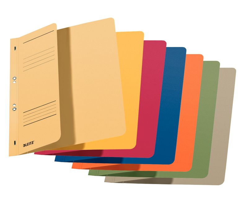 Dosar cu sina Leitz 1/2, carton, 100% reciclat- Fără griji când vine vorba de arhivareCaracteristici principale:- Capsele permit arhivarea dosarelor în biblioraft sau caiet mecanic cu 2 inele.