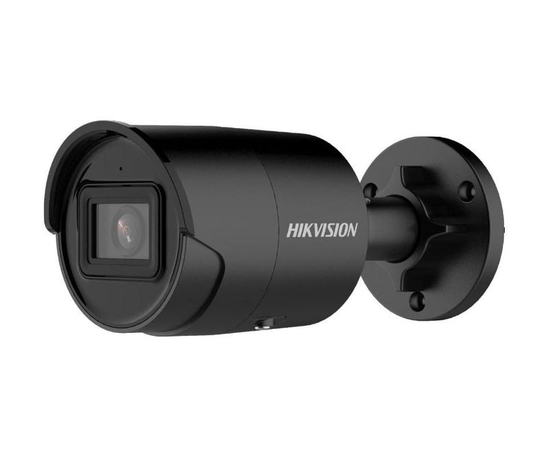 Camera supraveghere Hikvision IP bullet DS-2CD2043G2-IU(2.8mm)black, 4MP, culoare neagra, Acusens - filtrarea alarmelor false dupa corpul uman si masini, microfon audio incorporat, senzor: 1/3″ Progressive Scan CMOS , rezolutie: 2688 × 1520@30fps, iluminare: Color: 0.005 Lux @ (F1.6, AGC ON), 0 Lux cu IR on, lentila: 2.8mm, distanta IR: 40m, 120 dB WDR/ICR Cut/BLC/ HLC/3D DNR, Smart features: line crossing detection, intrusion detection, face detection, motion detection, compresie: H.265 +, Triple streams, slot micro SD pana la 256 GB, interfata retea: 1 RJ45 10M/100M self-adaptive, Audio: microfon audio incorporat, alimentare: 12 VDC si PoE, IP67, temperatura de functionare: -30 °C to 60 °C, dimensiuni: Ø70 × 161.7 mm, greutate: 490 g. Accesorii optionale: DS- 1280ZJ-XS