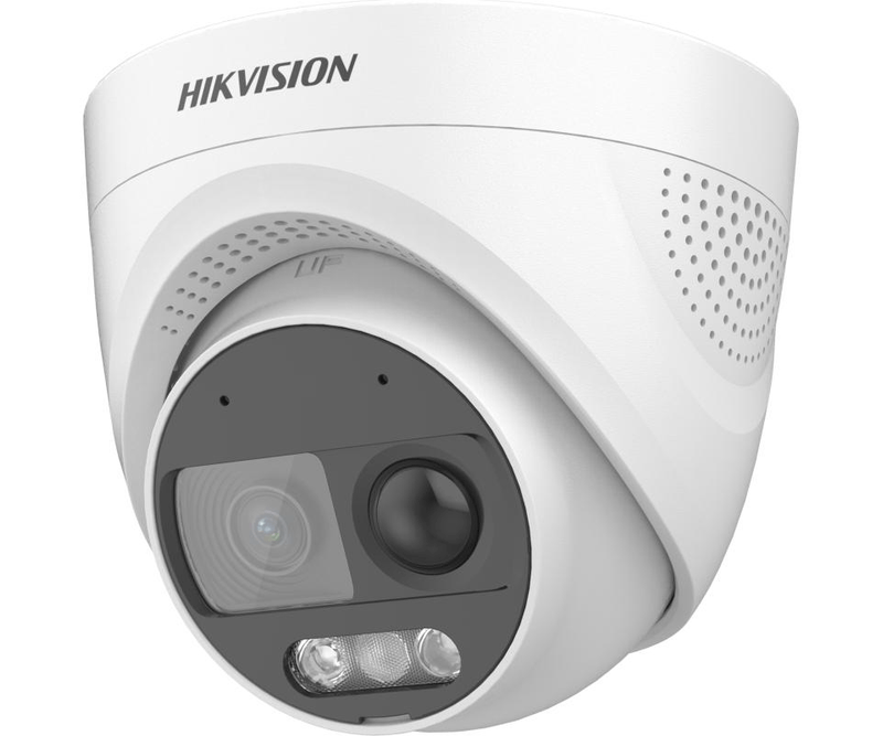 Camera de supraveghere Turret 2MP Hikvision DS-2CE72DF3T-PIRXOS(2.8MM), lentila fixa: 2.8mm, iluminare: 0.0005 Lux @ (F1.0, AGC ON), 0 Lux, lumina alba: 20m, iesire: 1xHD, microfon incorporat, alimentare: 12 VDC ± 25%, max. 9.6 W, protectie: IP67, dimensiuni: Ø 109.82 mm × 93.66 mm, greutate: 396g, temperatura de functionare: -40 °C to 60 °C.