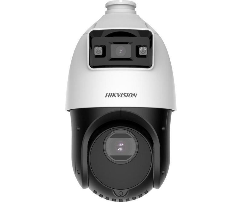 Camera de supraveghere IP Speed Dome 4MP Hikvision DS-2SE4C415MWG-E, lentila fixa bullet: 2.8 mm, lentila varifocala PTZ: 4.8 to 72 mm, 15 × optical, iluminare min.: [Bullet channel]: 0.0005 Lux @ (F1.0, AGC ON), 0 Lux; [PTZ channel]: Color: 0.005 Lux @ (F1.6, AGC ON), B/W: 0.001 Lux @ (F1.6, AGC ON), 0 Lux cu IR: 30m, interfata audio: 1/1, alarma: 1/1, slot card de memorie: microSD/microSDHC/microSDXC maxim 256GB, alarma la evenimente:Motion detection,video tampering alarm,exception (IP address conflict, HDD full, illegal login, HDD error, network disconnected, Abnormal Reboot),alarm input and output, Line crossing detection,intrusion detection,region entrance detection,region exiting detection,audio exception detection, alimentare: 12 VDC, PoE+, protectie: IP66, dimensiuni: Ø 166 mm × 375 mm, greutate: 2.4kg, temperatura de functionare: -30 °C to 65 °C.