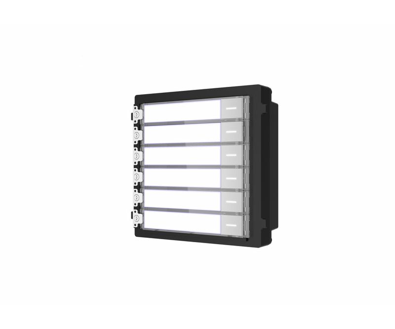 Modul de extensie videinterfon cu sase butoane de apelare Hikvision DS-KD-KK; montaj aplicat sau ingropat (acesoriile de montaj nu s untincluse), customizare afisare nume; iluminare pe timp de noapte;Conectare RS-485, 1 x Input; 1 x Output; Protectie: IP 65; Dimensiuni;Dimensiuni: 98.21 mm × 100.21 mm × 33.7 mm; Temperatura de functionare:-40°C to +60°C;