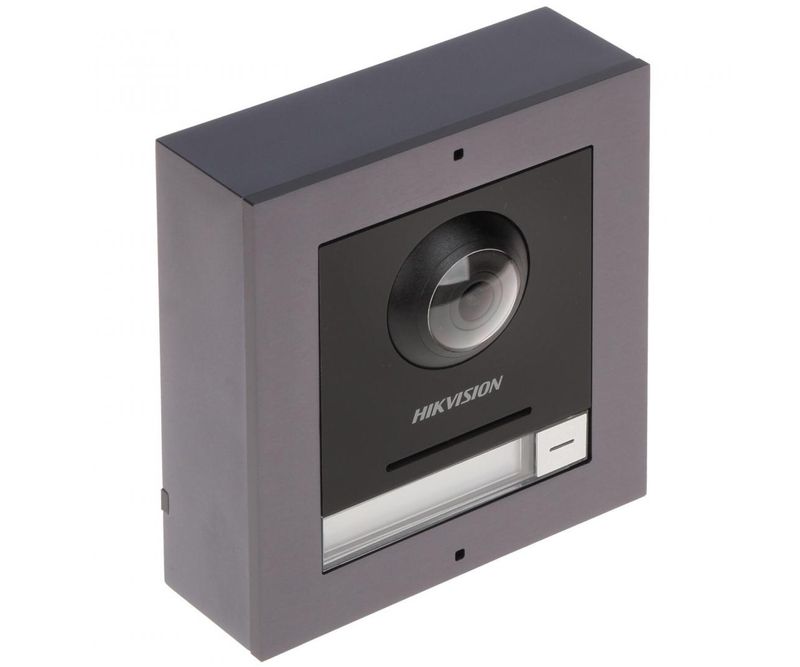 Post videointerfon de exterior pentru blocuri Hikvision DS-KD8003-IME1 (B)SURFACE Low illumination 2 MP HD IR camera , Ethernet 10/100 Mbps self-adaptive Ethernet, Door control 2, breakdown voltage: 36 V, Power supply 12 VDC/PoE, 4 W, Working temperature:-40° C to +55° C, Dimension 98 mm × 99.8 mm × 43.9 mm, Material Stainless steel.