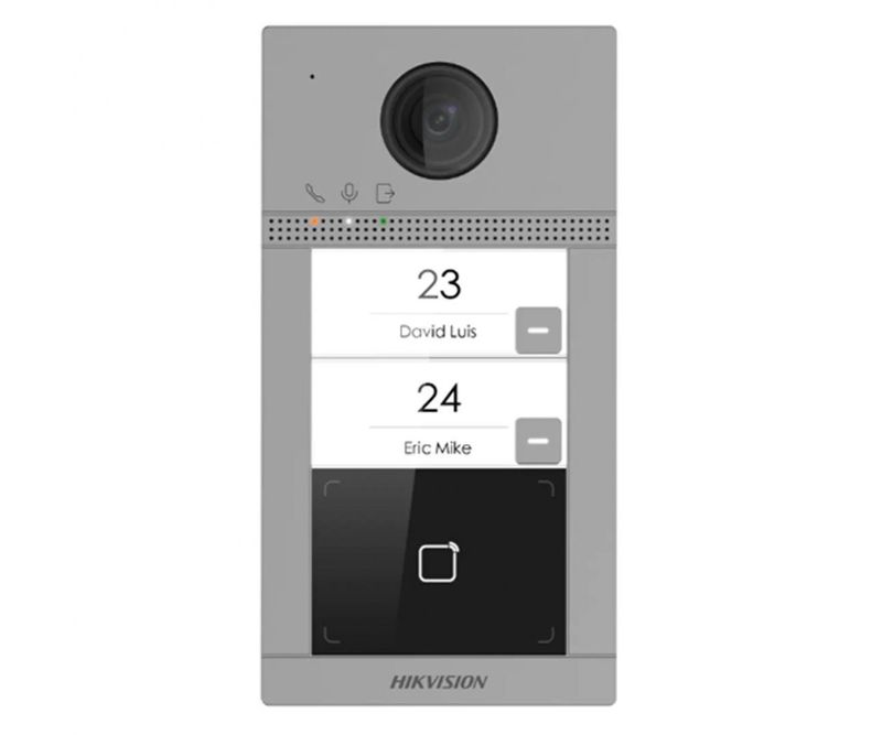 Post de exterior videointerfon IP Hikvision DS-KV8213-WME1(C); WIFI; 2 x buton de apelare(Support web configuration); camera video 2MP True WDR unghivizualizare: Horizontal: 124° Vertical: 75°, vizualizare pe timp de noapte IR maxim 3 metri; comunicare audio bidirectionala; cititor de card incorporat pentru carduri Mifare; frecventa de operare: 13.56 MHz; 2 x relee; 1 x RS-485; interfata retea: 10/100 Mbps Ethernet; 2.4 GHz Wi-Fi; configurare de la distanta via web; alimentare: 12VDC si PoE (standard IEEE802.3af );IP65, IK08; temperatura de functionare: -40 °C la +53 °C; dimensiuni: 174 mm × 91 mm × 29 mm; apelare video pe Smartphone sau tableta prin aplicatia HIK-Connect.