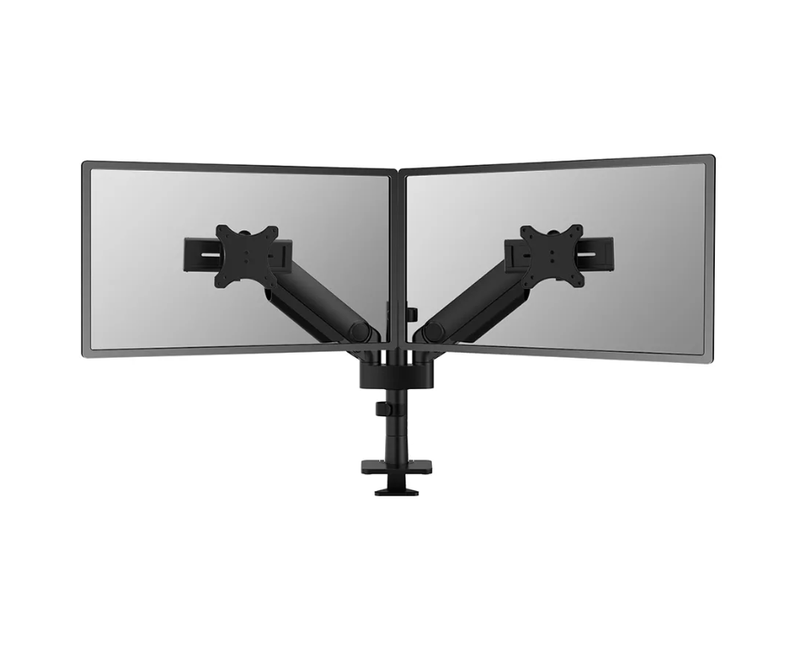 Brat dublu monitor Neomounts DS65S-950BL2; pentru display-uri cu diagonale 24-34, sistem de prindere VESA 75x75~100x100, greutate maxima suportata 11kg - per ecran, full motion, tilt +70°, swivel 90°, rotate 90°; gas spring; culoare negru. Garantie 5 ani