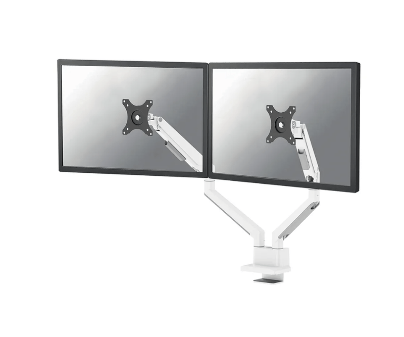 Brat dublu monitor Neomounts DS70-250WH2; pentru display-uri cu diagonale 17-32, sistem de prindere VESA 75x75~100x100, greutate maxima suportata 9 - per ecrankg, full motion, tilt +45°, swivel 90°, rotate 180°; gas spring; culoare argintiu. Garantie 5 ani