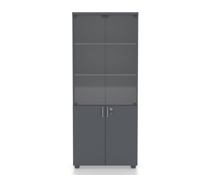 Compartimentul inferior are 2 usi de PAL care se inchid cu yala si o polita interioara. Compartimentul superior 2 usi de sticla 4 mm grosime, cu sistem push-to-open si 3 polite. Capac: PAL melaminat, 30 mm grosime