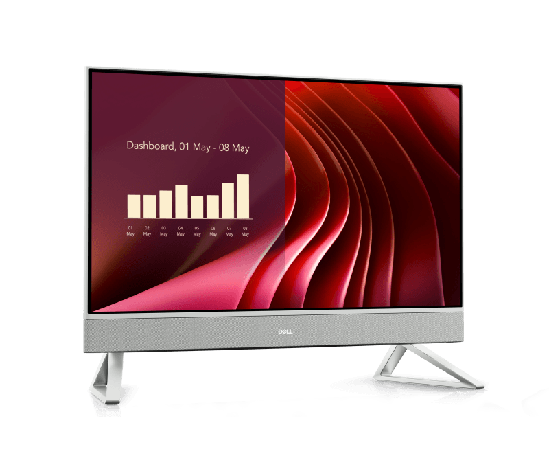DELL All-In-One EC24250, 23.8-inch FHD (1920 x 1080) Anti-Glare Narrow Border AIT Infinity Non Touch Display, 5MP, IR, Tilt Camera (White), Intel(R) Core(TM) 7 processor 150U (12MB cache, 10 cores, 12 threads, up to 5.4 GHz), Intel(R) Graphics, 16GB, 2x8GB, DDR5, 5200 MT/s, 1TB M.2 PCIe NVMe Solid State Drive, 90 Watt AC Adapter, Intel(R) Wi-Fi 6E AX211, 2x2, 802.11ax, Bluetooth(R) wireless card, Intel(R) Wi-Fi 6E 2x2 AX211, 802.11ax, Bluetooth(R) wireless card driver, Dell Pro Keyboard and Mouse - KM5221W - US International (QWERTY) - White, External ports: Network port: 1 x RJ45 ethernet port (1 Gbps), 3 x USB 3.2 Gen 1 (5 Gbps) ports with Wake-up support (S3/Modern Standby), 1 x USB 3.2 Gen 2 (10 Gbps) port with PowerShare, 1 x USB 3.2 Type-C Gen 2 (10 Gbps) port, Audio port: 1 x headset (headphone and microphone combo) port, Video port(s): 1 x HDMI-out 1.4b, 1 x HDMI-in 1.4, Media-card reader: 1 x SD- card 3.0 slot, Power-adapter port: 1 x 4.50 mm x 2.90 mm DC-in port, Security-cable slot Not supported, Internal Slots: M.2: 1 x M.2 2230 slot for PCIe solid-state drive, 1 x M.2 2230 slot for WiFi and Bluetooth combo card, Memory slots: 2 x SODIMM slots, Memory type: DDR5, Memory speed: 5200 MT/s, Maximum memory configuration: 32 GB, Minimum memory configuration: 8 GB, Memory size per slot: 8 GB, 16 GB, and 32 GB, Weight: Maximum weight (non-touchscreen)- 5.04 kg (11.11 lb), Maximum weight (touchscreen)- 5.32 kg (11.72 lb), Windows 11 Pro, 3Y Basic Onsite, McAfee+ Premium 30-day trial, McAfee Business Protection 1-year