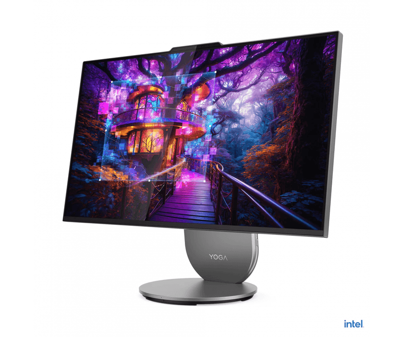 All-in-One Lenovo Yoga AIO 27IAH10 27 QHD (2560x1440) IPS 400nits, 99% sRGB, 4 side like, 120Hz, Touch, Intel® Core Ultra 7 255H, 16C (6P + 8E + 2LPE) / 16T, Max Turbo up to 5.1GHz, 24MB, video Integrated Intel® Arc™ 140T GPU, RAM 1x 16GB Soldered LPDDR5x-7467; Memory soldered to systemboard, no slots, dual-channel; 16GB soldered memory, not upgradable; 32GB soldered memory, not upgradable, SSD 1TB SSD M.2 2280 PCIe® 4.0x4 NVMe®, no ODD, no Card Reader, , Integrated 100/1000M, Wi-Fi® 7, 802.11be 2x2, Bluetooth 5.4, Porturi: Rear: 1x USB-C® (USB 10Gbps / 3.2 Gen 2); 2x USB-A (USB 10Gbps / USB 3.2 Gen 2); 1x HDMI®-in 2.1; 1x HDMI®-out 2.1 TMDS; 1x Ethernet (RJ-45); 1x power connector; Left: 1x USB-C® (USB 10Gbps / USB 3.2 Gen 2); 1x USB-A (USB 10Gbps / USB 3.2 Gen 2); 1x headphone / microphone combo jack (3.5mm), 170W 89% Adapter, Firmware TPM 2.0 integrated in SoC, Euterpe Wireless Keyboard, Grey, English (UK), Wireless Euterpe Mouse, Grey, 3Wx2 tweeter + 5Wx2 woofer, JBL®, 5.0MP + IR, Luna Grey, greutate 8.4 kg, dimensiuni 613.6 x 235 x 565.5 mm, 2-year, Courier or Carry-in; 3Y Premium Care with Onsite upgrade from 2Y Courier/Carry-in, Free DOS, Green Certifications: ENERGY STAR® 8.0; ErP Lot 3/7; REACH; RoHS compliant