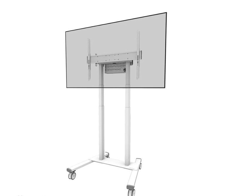 Stand mobil motorizat Neomounts by Newstar pentru display-uri cu diagonala 55-100, suporta pana la 110 kg, ajustare pe inaltime pana la 65 cm (35mm/secunda), VESA min. 100x100 mm, VESA max. 800x600, compatibil cu suport pentru camera video (AFL-875WH1), cu tavita multimedia (AV1-875WBL1) si cu bara pentru adaugarea unui nou display (ADM-875WH2), alb